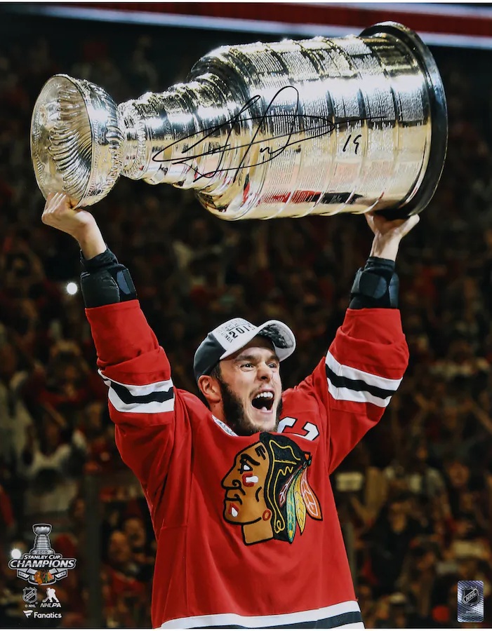 Jonathan Toews Chicago Blackhawks Unsigned 2015 Stanley Cup Champions Raising Cup Photograph