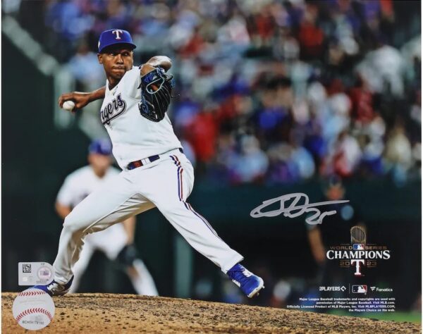 Jose Leclerc Texas Rangers Autographed 2023 World Series Champions 8″ x 10″ Pitching Photograph