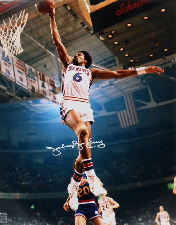Julius “Dr J” Erving Autographed Philadelphia 76ers 16×20 Photo (Playball Ink)