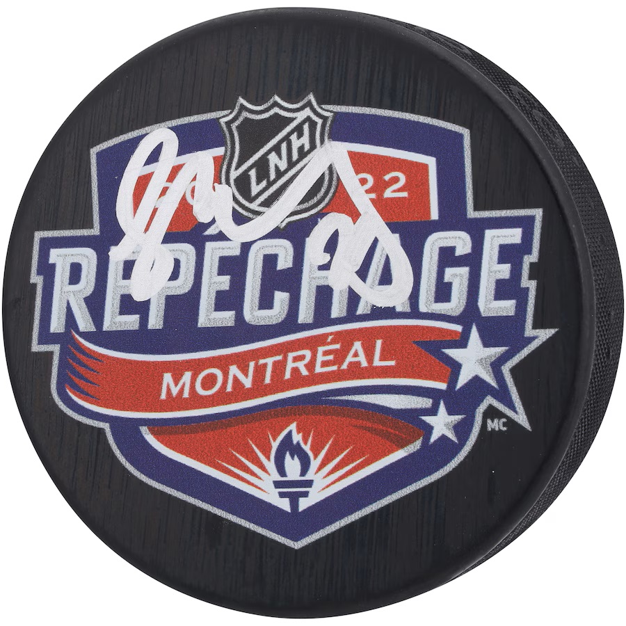 / Juraj Slafkovsky Montreal Canadiens Autographed 2022 NHL Draft Logo Hockey Puck