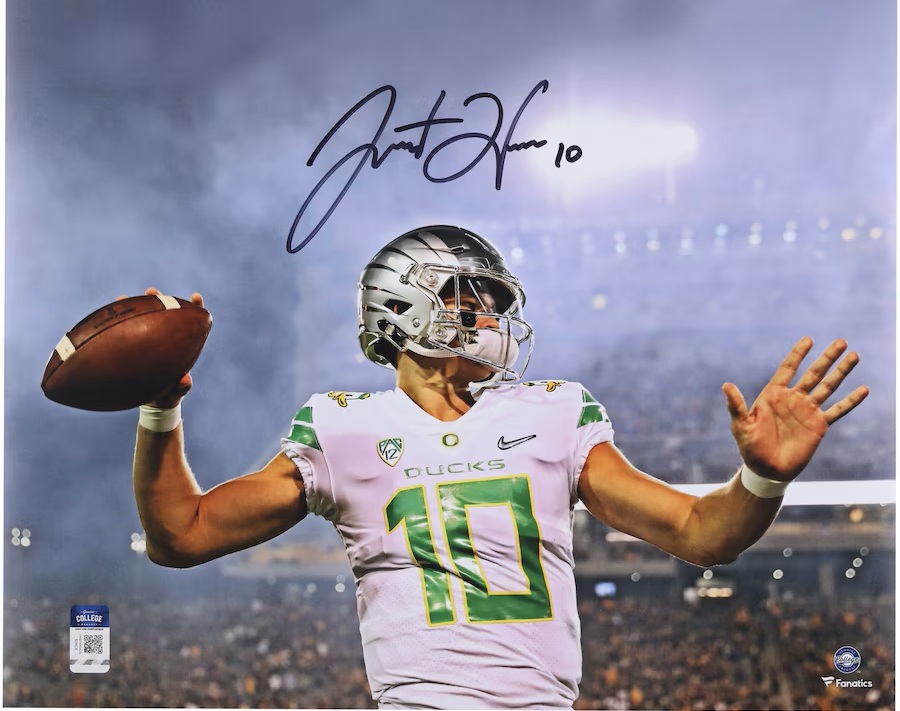 Elevate your Oregon Ducks collection and own a keepsake from one of the greatest players in school history with this Justin Herbert autographed 16" x 20" Smoke Warm Up Photograph. This striking picture captures the iconic Ducks quarterback preparing for action, surrounded by the pre-game excitement and energy of Autzen Stadium. Each photo includes an individually numbered, tamper-evident hologram that is authenticated with FanSecure technology and verifiable online.