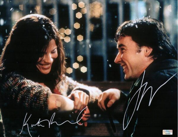 This 11x14 photo from the hit movie Serendipity has been personally hand-signed by Kate Beckinsale and John Cusack during their signings with Celebrity Authentics. In this classic romance film, Sara (Kate Beckinsale) asks Jonathan (John Cusack) to write his name and phone number on a $5 bill, while she writes her name and number on the inside cover of a copy of Love in the Time of Cholera. If they are meant to be together, he will find the book and she will find the $5 bill, and they will find their way back to each other. Item ships affixed with Celebrity Authentics serial-numbered and tamper evident Authentication Hologram and Celebrity Authentics Certificates of Authenticity featuring pictures of Kate and John signing photo.