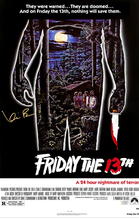 This 1980 Friday the 13th 16x24 Movie Poster has been personally autographed by film star Kevin Bacon during his signing with Celebrity Authentics. Crystal Lake's history of murder doesn't deter counselors from setting up a summer camp in the woodsy area. Superstitious locals warn against it, but the fresh-faced young people -- Jack (Kevin Bacon), Alice (Adrienne King), Bill (Harry Crosby), Marcie (Jeannine Taylor) and Ned (Mark Nelson) -- pay little heed to the old-timers. Then they find themselves stalked by a brutal killer. As they're slashed, shot and stabbed, the counselors struggle to stay alive against a merciless opponent. Ships affixed with Celebrity Authentics serial-numbered Authentication hologram and includes Celebrity Authentics Certificate of Authenticity featuring pictures of Kevin signing poster.