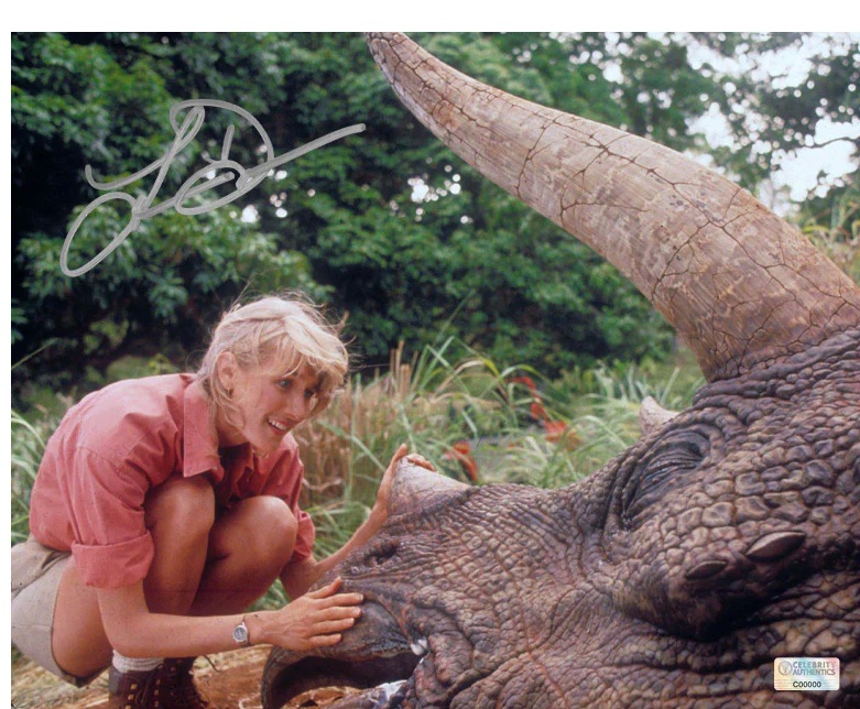 This 1993 Jurassic Park Ellie Sattler 8x10 Photo has been personally hand-signed by Laura Dern during her exclusive signing with Celebrity Authentics! In Steven Spielberg's classic blockbuster, paleontologists Alan Grant (Sam Neill) and Ellie Sattler (Laura Dern) and mathematician Ian Malcolm (Jeff Goldblum) are among a select group chosen to tour an island theme park populated by dinosaurs created from prehistoric DNA. While the park's mastermind, billionaire John Hammond, assures everyone that the facility is safe, they find out otherwise when various ferocious predators break free and go on the hunt. Ships affixed with Celebrity Authentics serial-numbered Authentication hologram and includes Celebrity Authentics Certificate of Authenticity featuring picture of Laura signing photo.