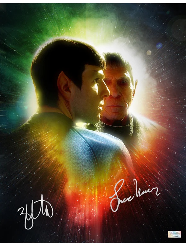 Leonard Nimoy and Zachary Quinto Autographed Star Trek Spock Legacy 11×14 Photo