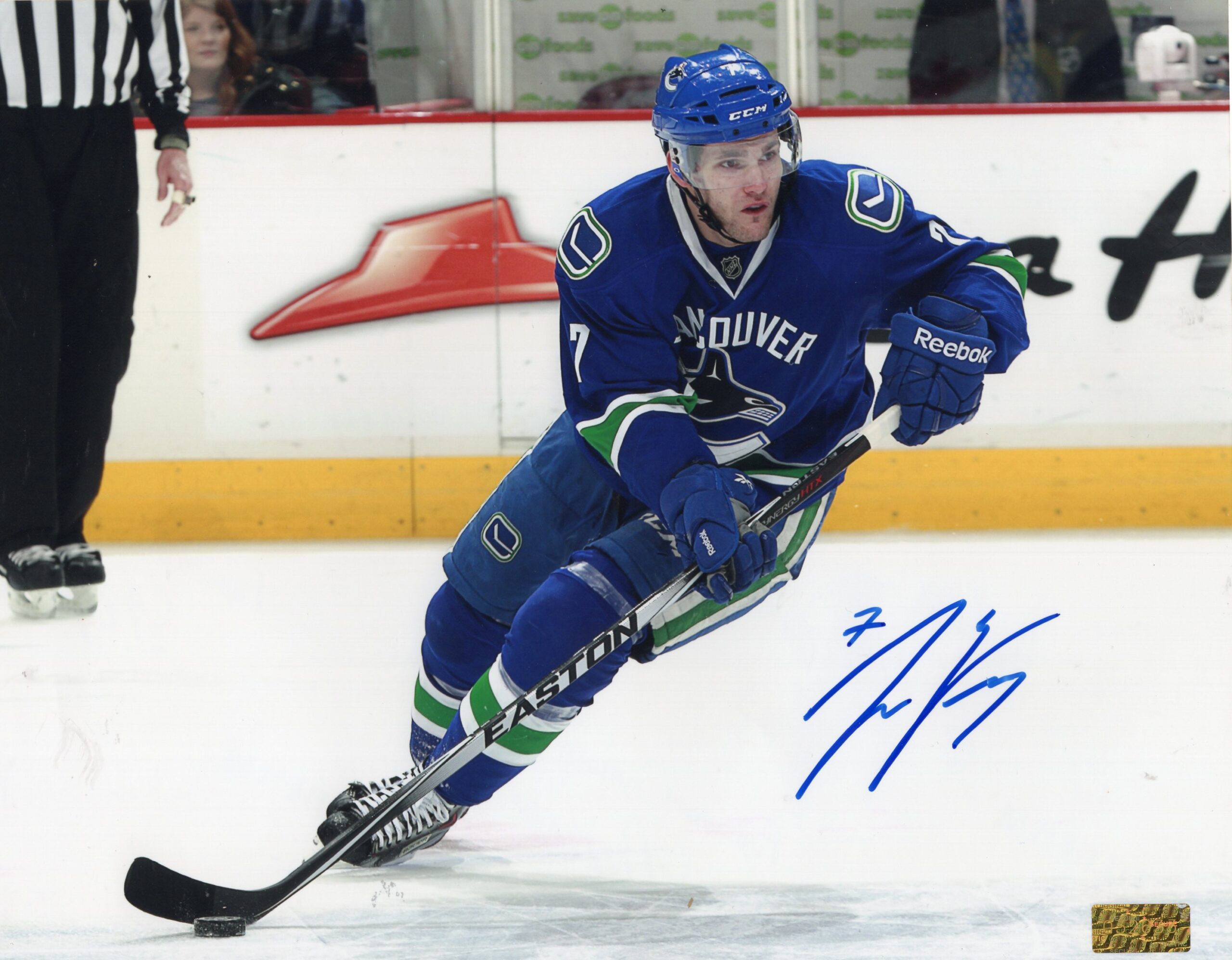 This Linden Vey Autographed 8x10 Photo is a great collectible for hockey fans and memorabilia collectors. Vey enjoyed an NHL career with teams including the Vancouver Canucks, Calgary Flames, and Los Angeles Kings, showcasing his skill and versatility at the professional level. A clean, signed 8x10 that makes a solid addition to any hockey collection.