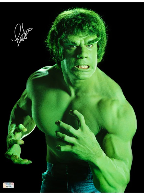 This classic 11x14 photo from The Incredible Hulk has been personally hand-signed by 2X Mr. Universe and fan favorite, Lou Ferrigno during his signing with Celebrity Authentics. Dr. David Banner is a widowed scientist caught in the middle of an experiment gone bad. As a result, whenever Banner gets extremely upset or stressed out, he turns into a huge green monster called the Incredible Hulk, with awesome strength and rage to match. To keep from being discovered, Banner lives a nomadic life, traveling from town to town in search of a cure and helping people where he can, all the while trying to avoid suspicious reporter Jack McGee, who wants to expose Banner and the Hulk. "Don't make me angry. You wouldn't like me when I'm angry," Banner warns McGee in more than one episode. Ships affixed with Celebrity Authentics serial-numbered and tamper evident Authentication Hologram and includes Celebrity Authentics Certificate of Authenticity featuring picture of Lou signing photo.