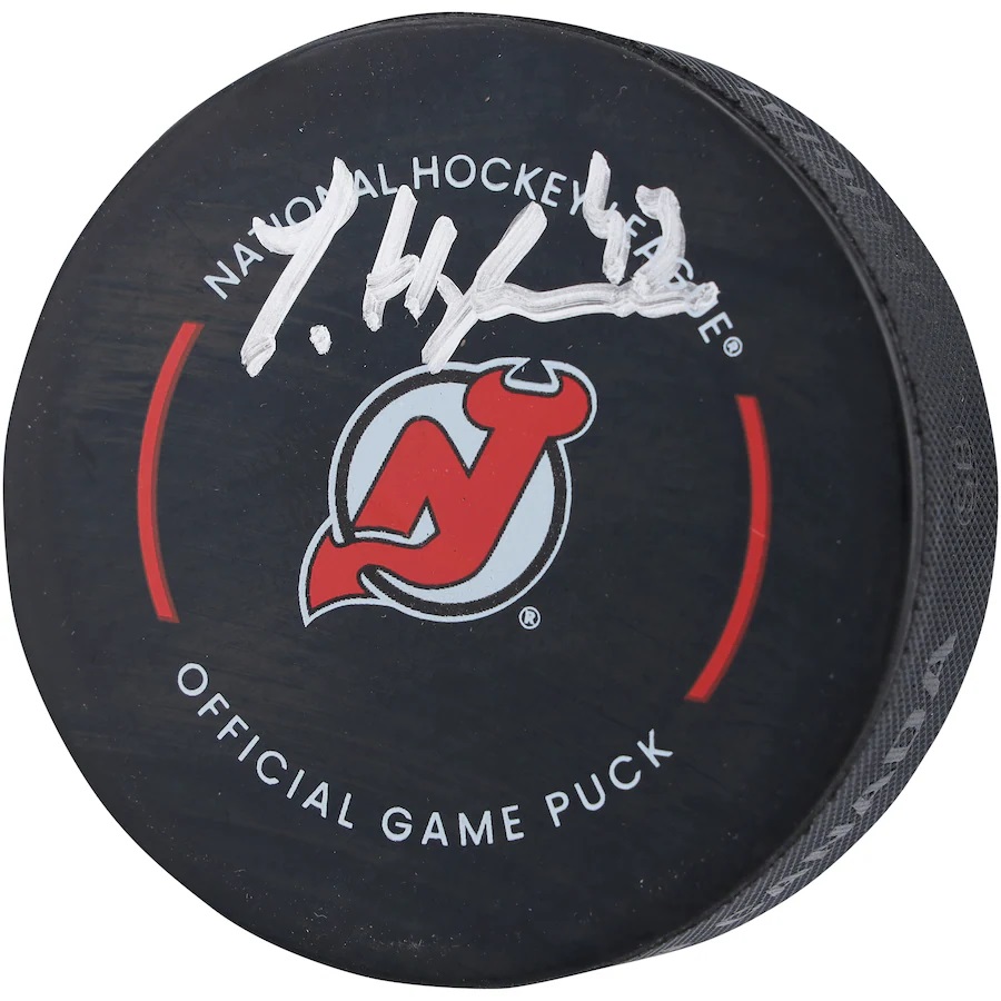 If Luke Hughes is one of your favorite players on the New Jersey Devils, then be sure to add this autographed Official Game Puck to your collection. Featuring a hand-signed signature from the fourth overall pick in the 2021 NHL Entry Draft and authentic team detail, this puck is a must-have for any die-hard New Jersey Devils fan or serious NHL collector.