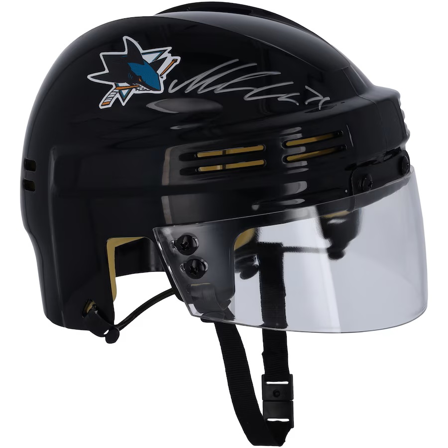 Elevate your collection of San Jose Sharks memorabilia with this Macklin Celebrini autographed Black Mini Helmet. It features eye-catching team details and a distinct signature from the first overall pick in the 2024 NHL Draft. Additionally, this collectible includes an individually numbered, tamper-evident hologram that can be verified online to certify authenticity.