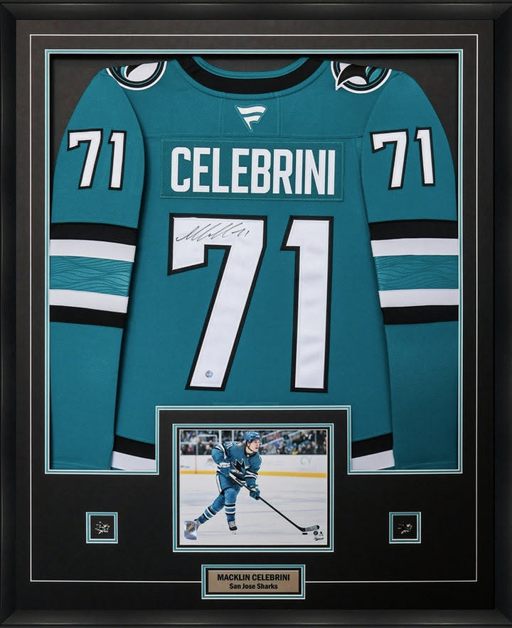 Macklin Celebrini San Jose Sharks “Generational Talent” Framed Jersey