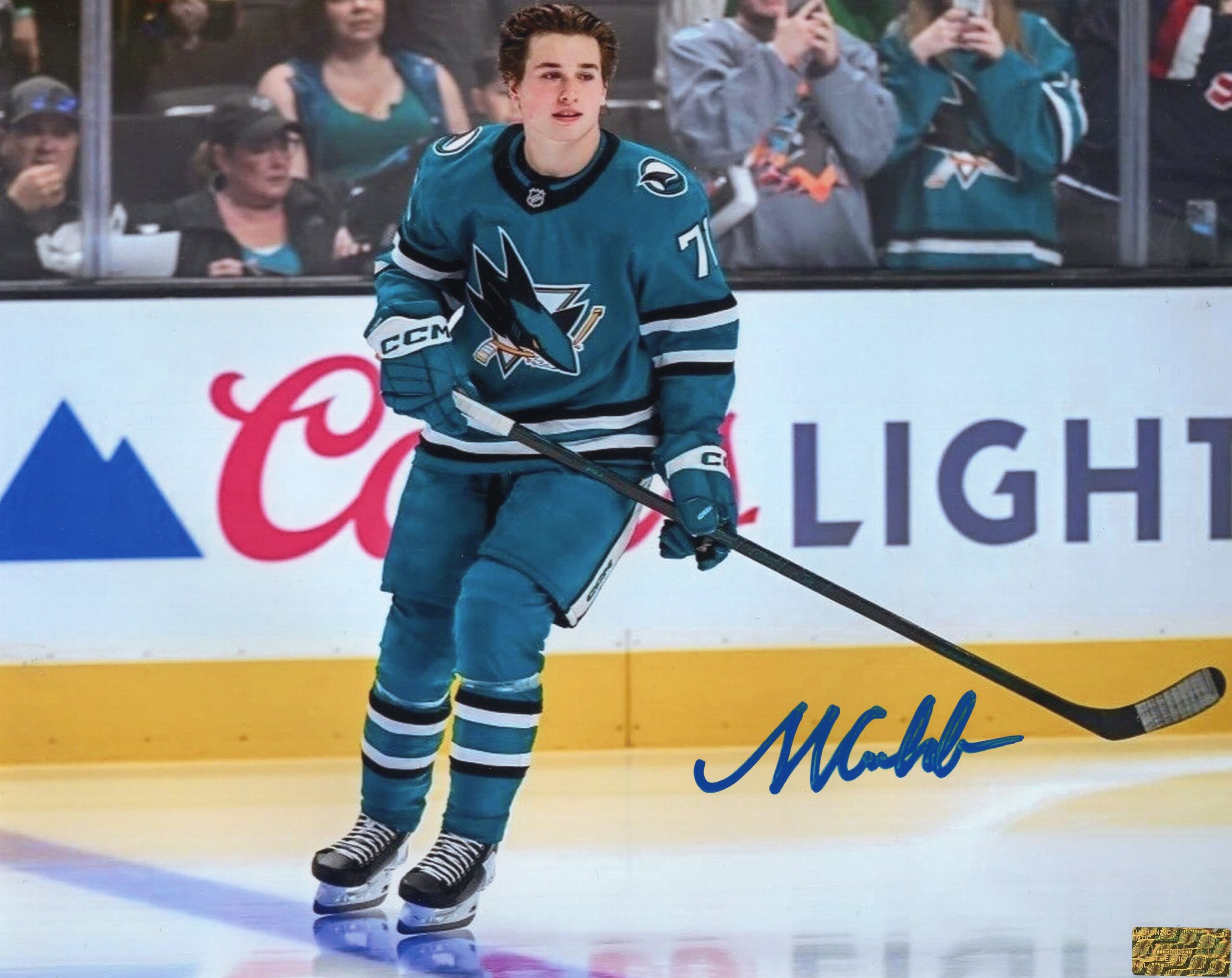 This autographed 8x10 photo captures Macklin Celebrini during pregame warmups, showcasing the poise and focus of one of hockey’s most exciting young stars. Dressed in his team gear and gliding across the ice, Celebrini is seen preparing for action, stick in hand as he readies for the upcoming game. The crisp on-ice setting highlights his smooth skating stride and confident presence, offering a behind-the-scenes look at the moments before puck drop. Personally signed by Celebrini, this warmup image is a standout collectible that reflects both his dedication to the game and his rapidly rising profile in the hockey world.