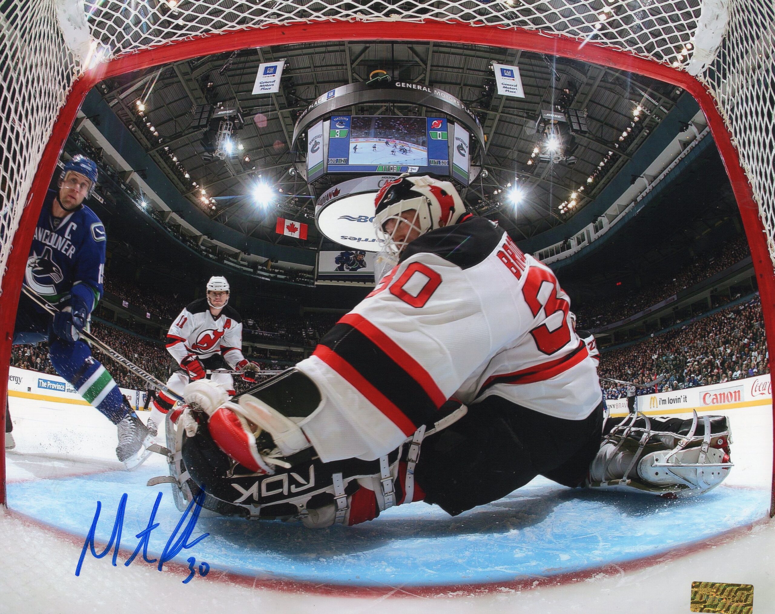 This autographed 8x10 photo of Martin Brodeur captures the legendary goaltender in the midst of making a highlight-reel save, showcasing his exceptional reflexes and trademark calm in the crease. The action shot reflects Brodeur’s iconic style and hockey IQ that helped define a generation and cement his status as one of the greatest goaltenders in NHL history. Completed with a bold, clean autograph, this photo is a premium collectible and an essential piece for any hockey fan or memorabilia collection.