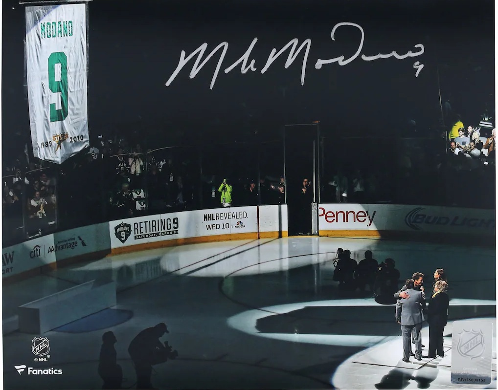 Mike Modano Dallas Stars Autographed 16″ x 20″ Jersey Retirement Night Photograph