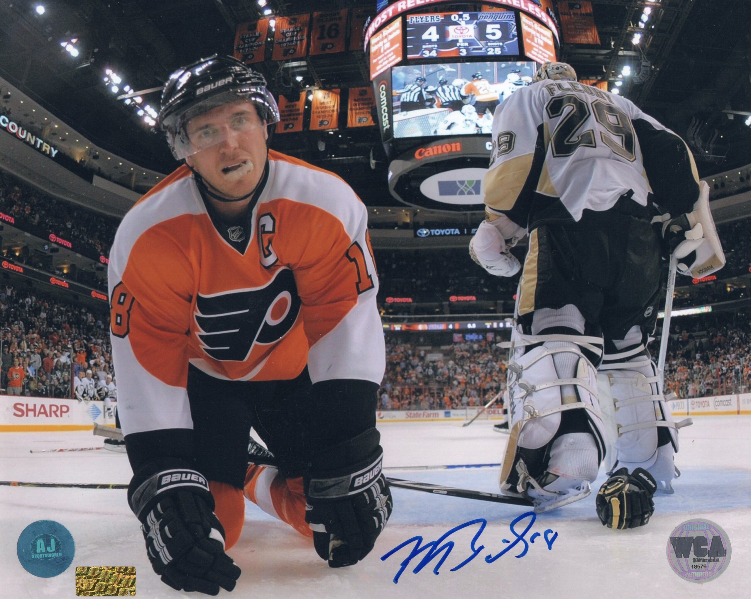 This striking 8x10 photograph features former NHL star Mike Richards in full game action, captured during his prime with crisp detail and energy. Richards has signed the photo boldly across the image, adding a clean, authentic autograph that stands out beautifully against the background. A perfect piece for any hockey fan or memorabilia collector, this signed photo showcases Richards’ intensity, leadership, and championship pedigree. Ideal for framing and display.