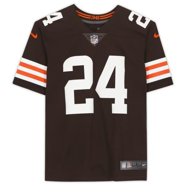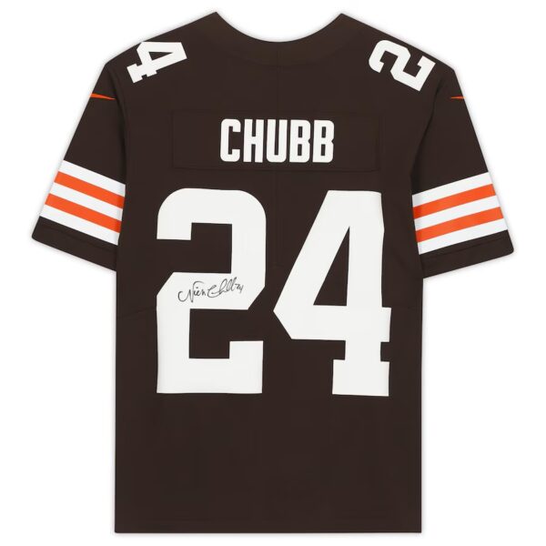 This jersey has been personally hand-signed by Nick Chubb. It is officially licensed by the National Football League and comes with an individually numbered, tamper-evident hologram from Fanatics Authentic. To ensure authenticity, the hologram can be reviewed online. This process helps to ensure that the product purchased is authentic and eliminates any possibility of duplication or fraud.