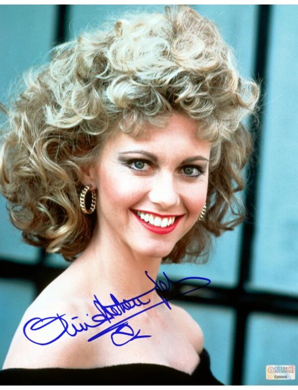 This beautiful 8x10 Photo of Olivia Newton-John as Sandy from Grease has been personally hand-signed by Olivia during her exclusive signing with Celebrity Authentics. Olivia stole our hearts as Sandy, who along with her family, moved to America from Australia, after summer vacation. She is also the girlfriend to Danny Zuko. She didn't become a member of the Pink Ladies, because Rizzo, the leader, thought she was "too pure to be pink", although at the end of the movie she is accepted as female greaser. Ships affixed with Celebrity Authentics serial-numbered and tamper evident Authentication Hologram and includes Celebrity Authentics Certificate of Authenticity featuring picture of Olivia signing photo.