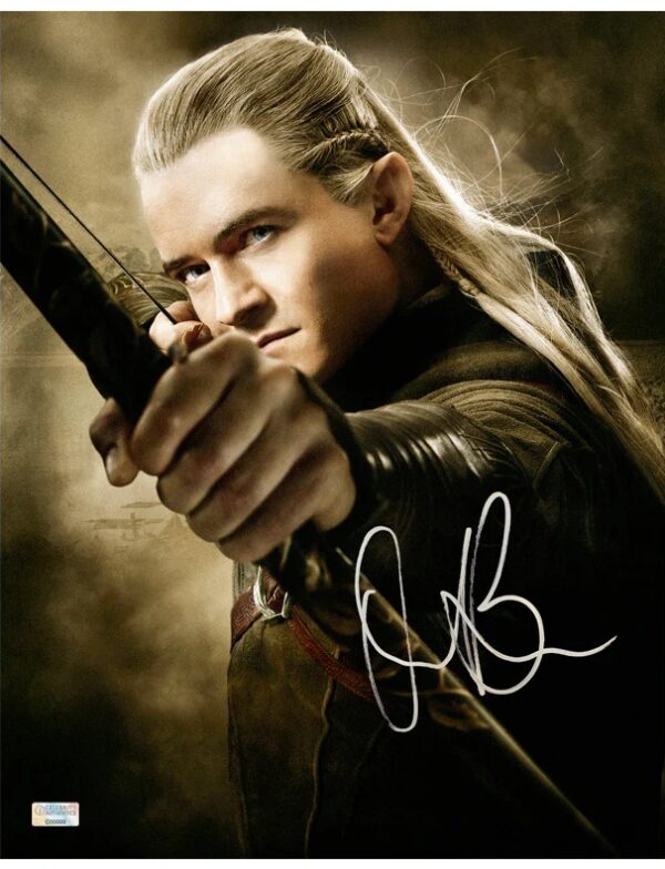 This 11x14 photo of Legolas from The Lord of the Rings has been personally hand-signed by Orlando Bloom during his signing with Celebrity Authentics. Â Item ships affixed with Celebrity Authentics serial-numbered and tamper evident Authentication Hologram and includes Celebrity Authentics Certificate of Authenticity featuring picture of Orlando signing photo.