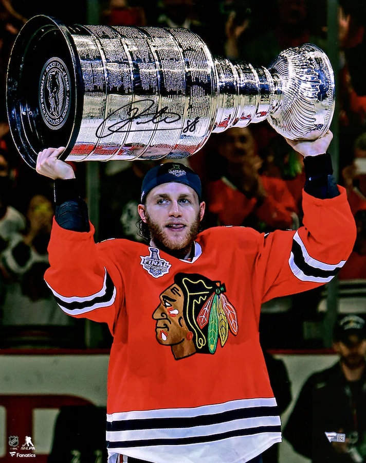 Patrick Kane Chicago Blackhawks Autographed 16″ x 20″ 2015 Raising Cup Photograph