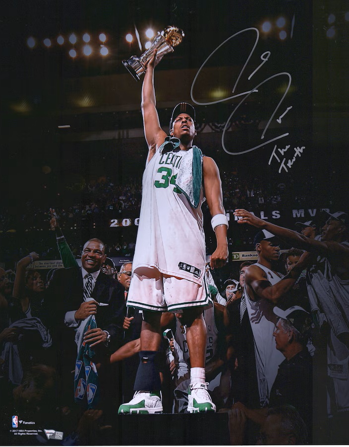 Paul Pierce Boston Celtics Autographed 16″ x 20″ Holding Trophy Photograph with “The Truth” Inscription