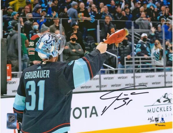 Commemorate an exciting moment for Seattle Kraken fans with this Philipp Grubauer autographed 11'' x 14'' Salmon Spotlight Photograph - Limited Edition of 32. Whether displayed in your home or office, it's the perfect way to highlight your passion for the Seattle Kraken for years to come.