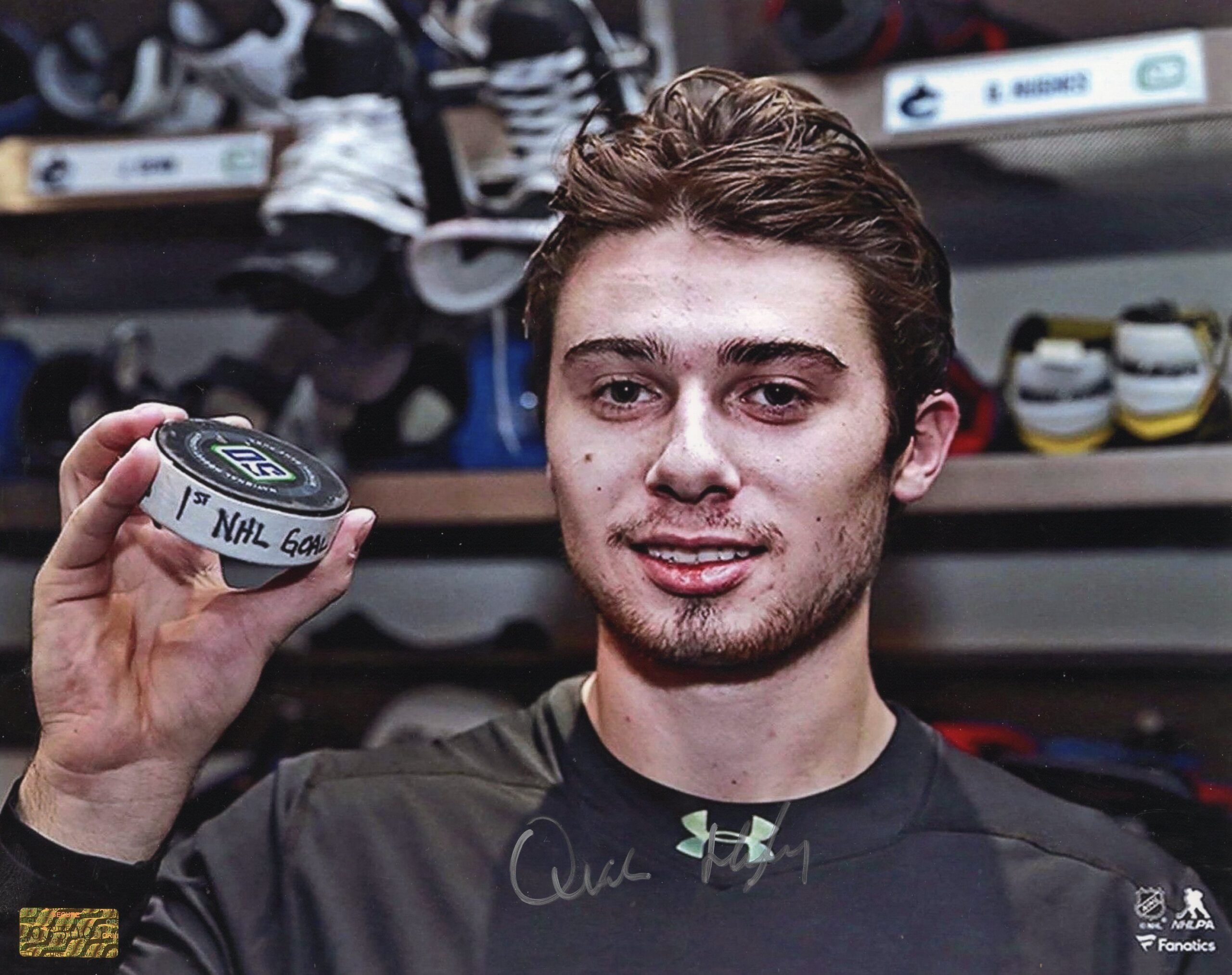 / Quinn Hughes Vancouver Canucks 1st NHL Goal Autographed 8×10 Photo