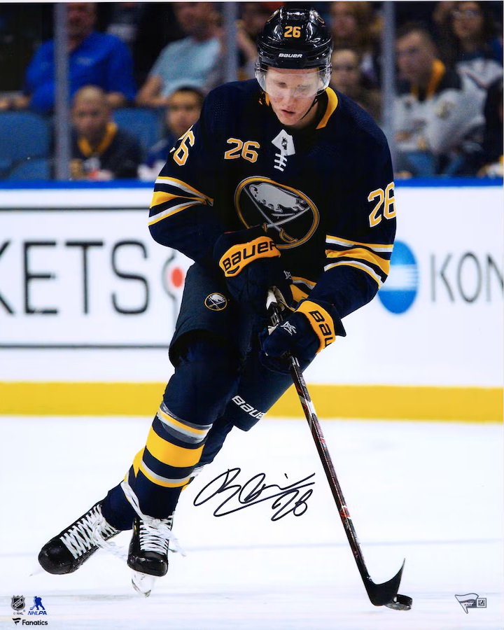 This 16" x 20" photograph has been personally hand-signed by Rasmus Dahlin. It is officially licensed by the National Hockey League and comes with an individually numbered, tamper-evident hologram from Fanatics Authentic. To ensure authenticity, the hologram can be reviewed online. This process helps to ensure that the product purchased is authentic and eliminates any possibility of duplication or fraud.
