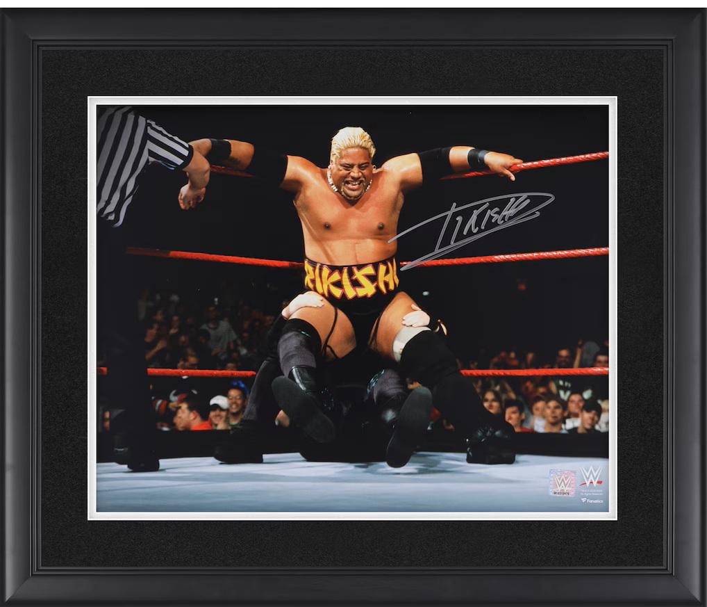 Elevate your collection of WWE memorabilia with this Rikishi autographed Framed 16" x 20" Corner Stinkface Photograph. The eye-catching image captures your favorite Superstar in action, complete with a distinct signature that makes this a must-have for any dedicated wrestling enthusiast. With an individually numbered, tamper-evident hologram, this picture can be authenticated with FanSecure technology and verified online.