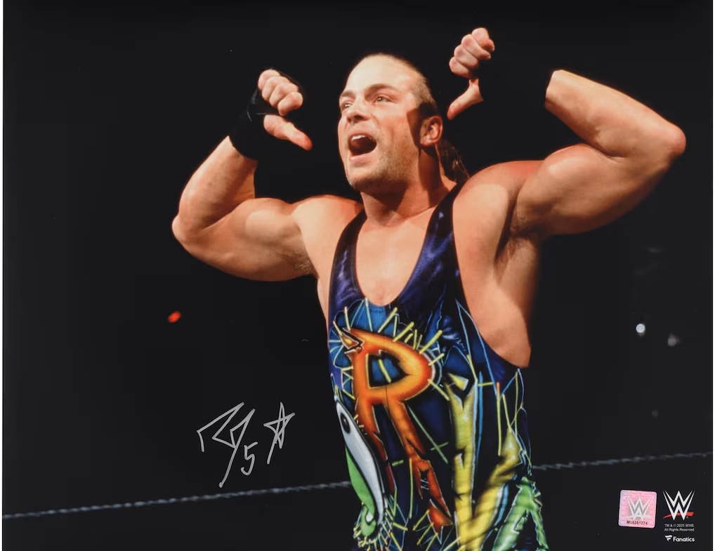 Elevate your collection of WWE memorabilia with this Rob Van Dam autographed 8" x 10" Thumb Pointing Pose Photograph. It features an eye-catching image of the iconic Superstar and their distinct signature. Additionally, this collectible photo includes an individually numbered, tamper-evident hologram that can be verified online to certify authenticity.
