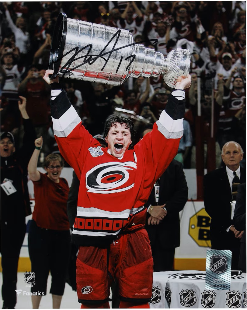 Rod Brind’Amour Carolina Hurricanes Autographed 8″ x 10″ 2006 Stanley Cup Champions Raising Cup Photograph