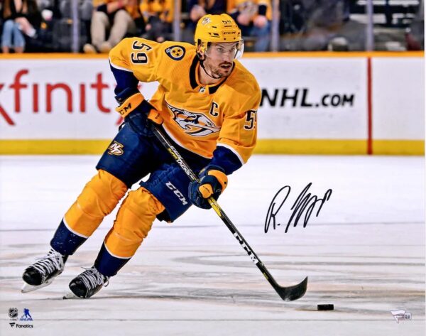 Roman Josi Nashville Predators Autographed 16″ x 20″ Gold Jersey Skating Photograph
