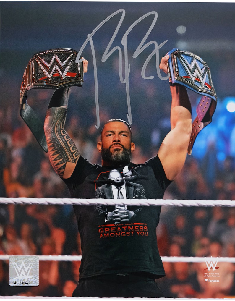 / Roman Reigns WWE Autographed 8″ x 10″ Raising Titles Photograph