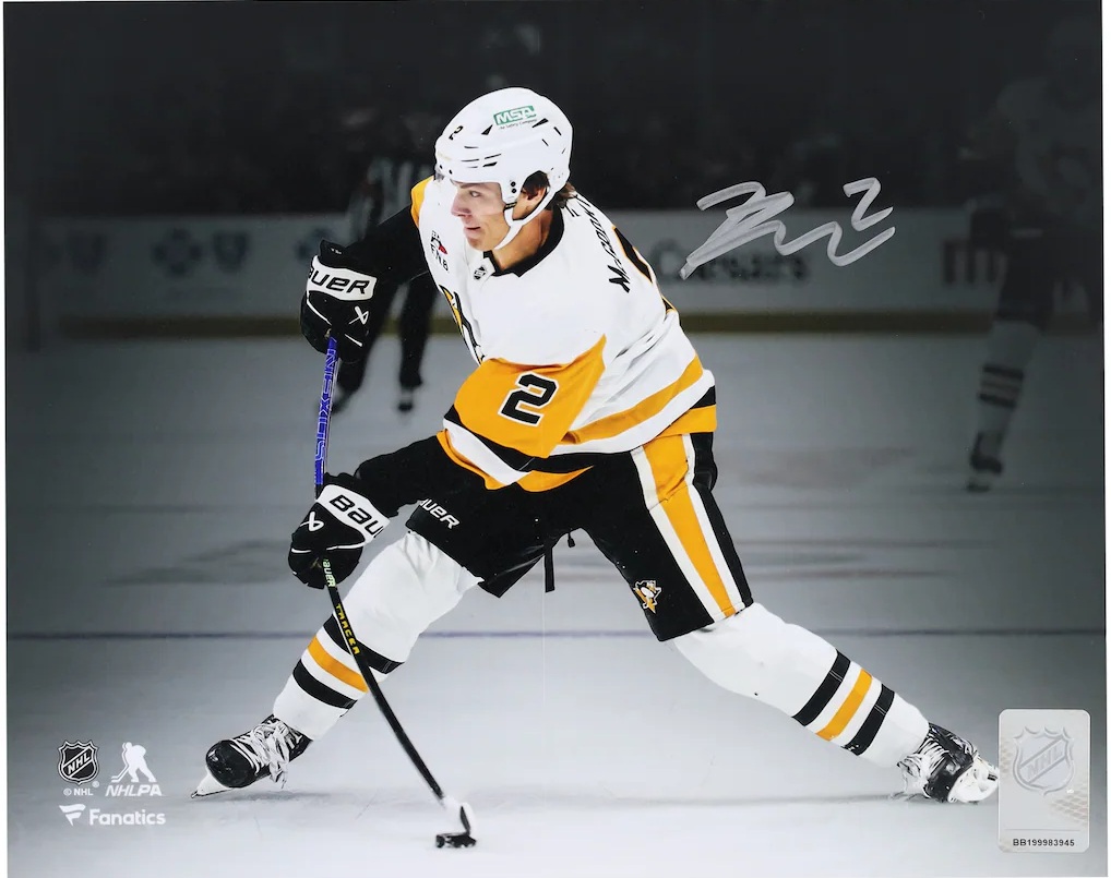 Elevate your collection of Pittsburgh Penguins memorabilia with this Rutger McGroarty autographed 8" x 10" White Jersey Shooting Spotlight Photograph. The eye-catching image captures one of your favorite athletes in action, complete with a distinct signature that makes it a must-have for any dedicated hockey enthusiast. Additionally, this collectible includes an individually numbered, tamper-evident hologram that can be verified online to certify authenticity.