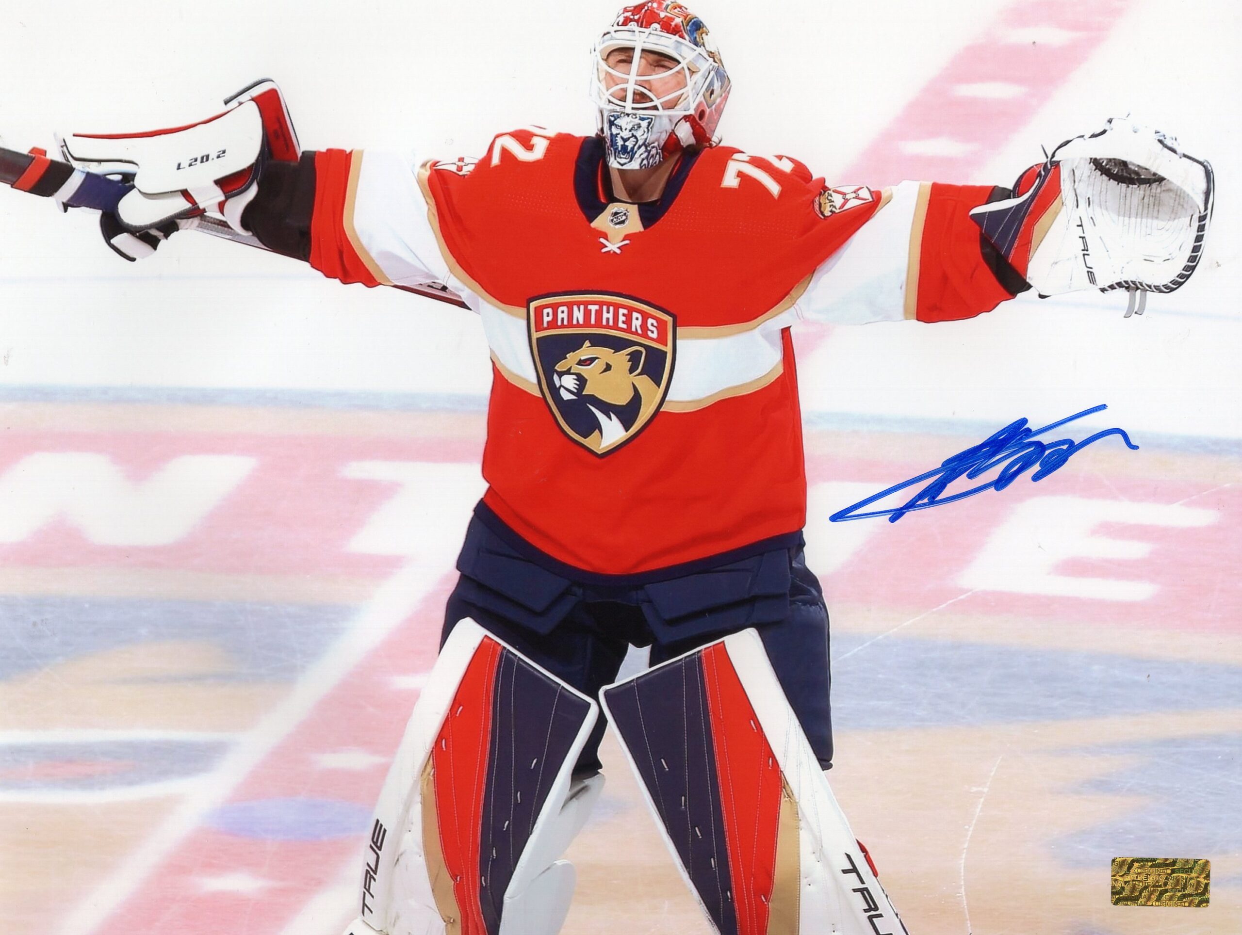 This Sergei Bobrovsky autographed 8x10 photo features the elite goaltender wearing a bold red jersey, captured in a sharp in-game pose that showcases his intense focus and championship-caliber presence in the crease. The vibrant jersey color highlights Bobrovsky’s poised stance and technical precision, reflecting the consistency and excellence that have defined his NHL career. Hand-signed by Bobrovsky, this photo is a standout collectible for hockey fans and memorabilia collectors, celebrating one of the game’s premier goaltenders.