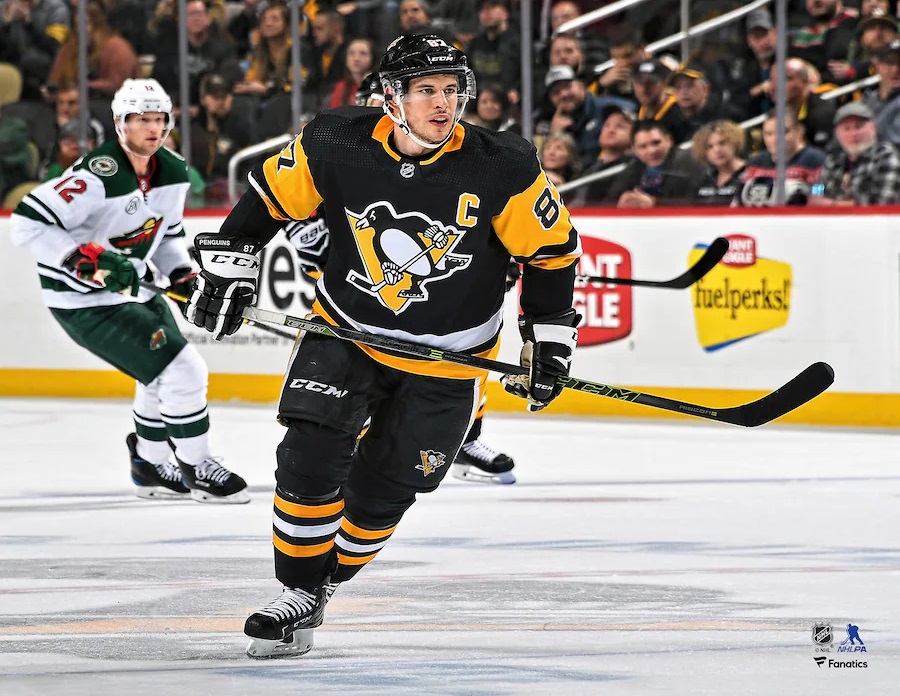 Sidney Crosby Pittsburgh Penguins Unsigned Black Jersey Skating Photograph quantity