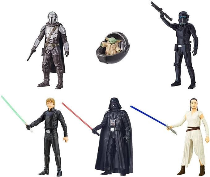 Fulfill your intergalactic fantasies with this Star Wars Action Figure Set of 6 featuring some of the most iconic characters from the franchise. The set includes Darth Vader, Luke Skywalker, The Mandalorian, Baby Yoda, Imperial Death Trooper, and Yoda. Crafted from high-quality plastic, these 6-inch action figures are perfect for collectors and fans alike.Recreate your favorite moments from the Star Wars films or The Mandalorian TV show with this set of action figures that come in their original unopened packaging. A must-have for any Star Wars enthusiast, this set is brought to you by Hasbro and features a 100-grade quality which guarantees its authenticity. May the force be with you! |