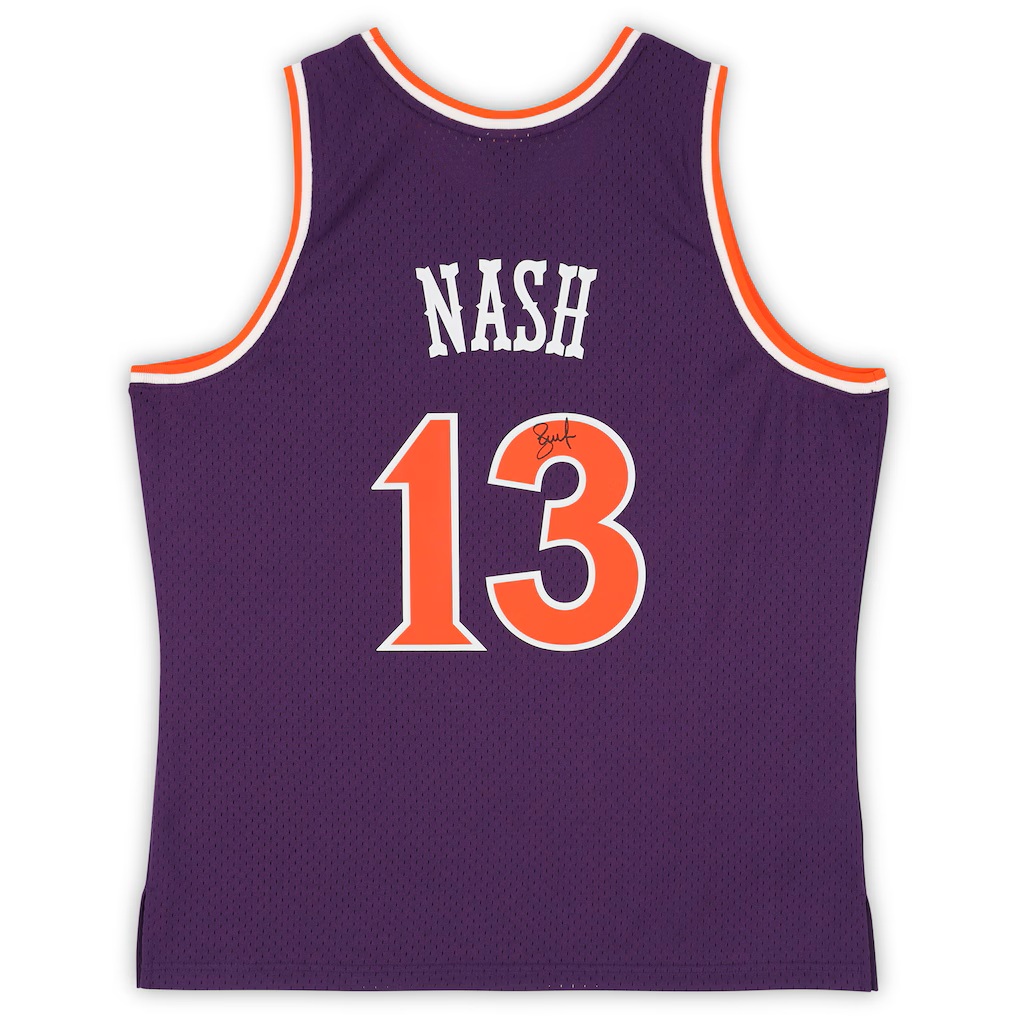 Relive Steve Nash's electrifying era with the Phoenix Suns with this Autographed Mitchell & Ness Purple 2005-06 Swingman Jersey. This jersey from Nash's second stint with the Suns showcases the purple color scheme the team wore from 1992-2004 and again from 2005-13. It's a must-have for any fan of "Nash-ional Basketball" and the seven-seconds-or-less Phoenix Suns. This collectible is authenticated with FanSecure technology and its individually numbered, tamper-evident hologram can be verified online.