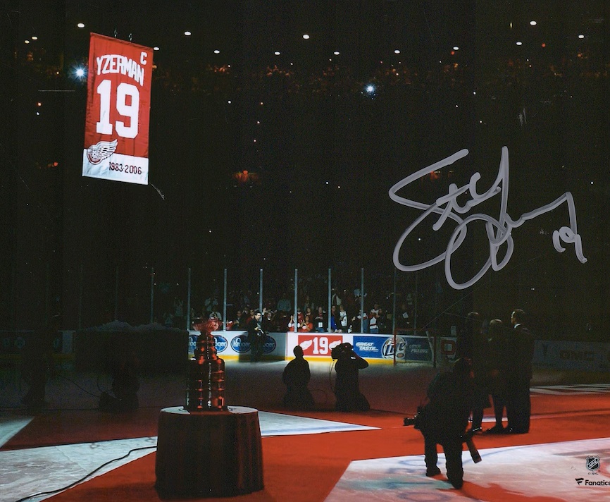 Take your collection of Detroit Red Wings memorabilia to the next level with this Steve Yzerman Autographed 8" x 10" Jersey Retirement Night Photograph. Whether displayed in your home or office, it's the perfect way to highlight your passion for the Detroit Red Wings for years to come.