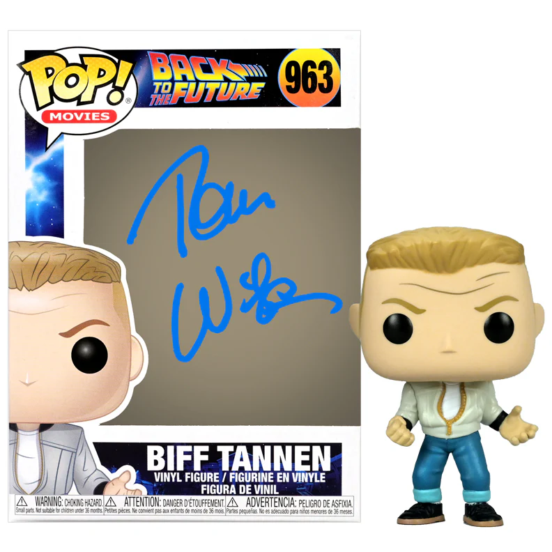 This rare, vaulted Back to the Future Biff Tannen Pop! Vinyl Figure #963 has been personally hand-signed by Tom Wilson during his signing with Celebrity Authentics. In this 1980s sci-fi classic, small-town California teen Marty McFly (Michael J. Fox) is thrown back into the '50s when an experiment by his eccentric scientist friend Doc Brown (Christopher Lloyd) goes awry. Traveling through time in a modified DeLorean car, Marty encounters young versions of his parents (Crispin Glover, Lea Thompson), and must make sure that they fall in love or he'll cease to exist. Even more dauntingly, Marty has to return to his own time and save the life of Doc Brown. Ships affixed with Celebrity Authentics serial-numbered and tamper evident Authentication Hologram and includes Celebrity Authentics Certificate of Authenticity featuring picture of Tom signing the box.