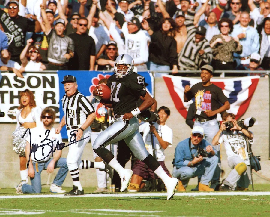 Tim Brown Las Vegas Raiders Autographed 8” x 10” Running Stands Behind Photograph