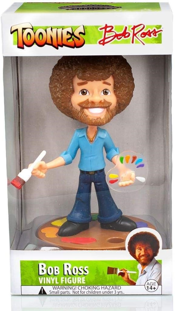A must-have for all Bob Ross fans! Featuring the host of the hit 80s TV show, our Toonies Bob Ross Figure is 6.5" tall and comes in a Bob Ross inspired box. Created from premium multicolored PVC. Featuring Bob Ross in his trademark fro, as well as his usual attire including his long sleeved shirt and bell bottoms. Our Bob Ross viynl figure is also holding a paintbrush in one hand and an easel on the other, a perfect depiction from Bob's "The Joy of Painting" days! Calling all pop culture enthuasists! Can't get enough the famous artist's memorabilia? It's time to add this one to your growing collection! A Toynk Toys exclusive! Manufactured by Fourth Castle Micromedia. It's time to let your gift-giving "get crazy"! Planning for a Bob Ross-themed party or running out of ideas on what to give to your friends? With its adorable and funky look,our Bob Ross Figure is suitable for all occasions! The perfect present for birthdays, house-warming parties, Christmas, Hanukkah, graduation, and much more! Or just give it to the artist in your life to show your appreciation for them. This figure is certainly NOT a happy little accident! Own a piece inspired by the "happiest" television personalities in pop culture history! Be sure to check out the gold colored version of this collectible and exclusive figure!
