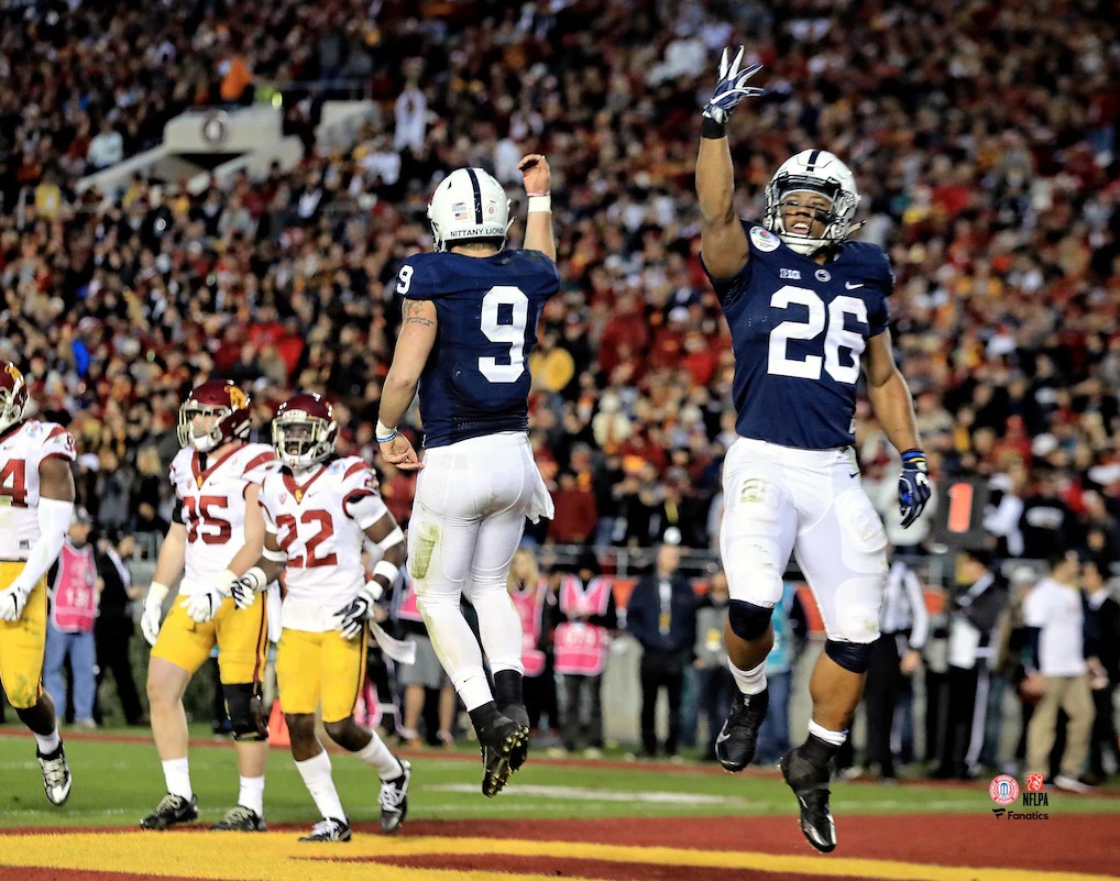 Trace McSorley Penn State Nittany Lions Unsigned Celebrates After Rushing for a 3-Yard Touchdown During the 2017 Rose Bowl Game Photograph