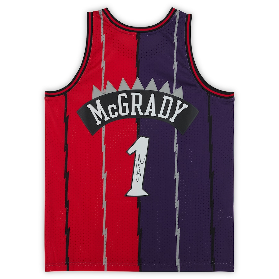 Pay homage to the impact that Tracy McGrady had on the Toronto Raptors by picking up this autographed Purple and Red Split Mitchell & Ness 1998-1999 Swingman Jersey. Featuring authentic team details and trims, this hand-signed jersey is a must-have for any die-hard fan of the Toronto Raptors or serious NBA collector.