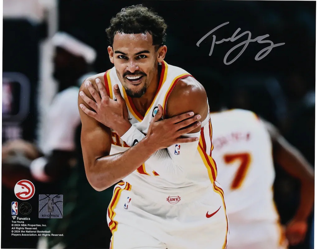 Elevate your collection of Atlanta Hawks memorabilia with this Trae Young autographed 16" x 20" Celebration Photograph. It features an eye-catching image of the superstar guard and his distinct signature. Additionally, this collectible includes an individually numbered, tamper-evident hologram that can be verified online to certify authenticity