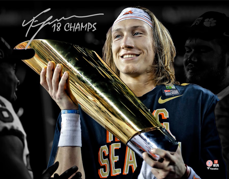 Trevor Lawrence Clemson Tigers Autographed 11″ x 14″ 2018 College Football Playoff National Championship Spotlight Photograph with “18 Champs” Inscription