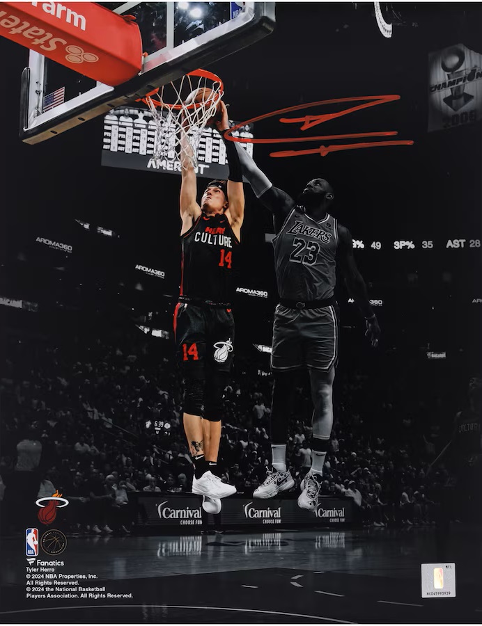 Tyler Herro Miami Heat Autographed 11″ x 14″ Spotlight Dunk vs. Los Angeles Lakers Photograph