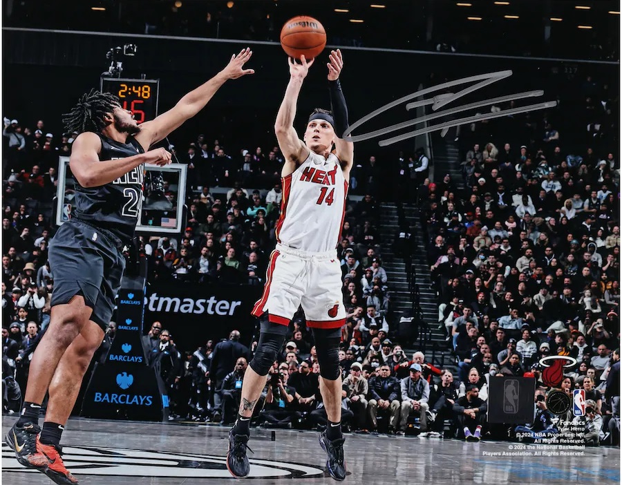 Tyler Herro Miami Heat Autographed 8″ x 10″ Shooting vs. Brooklyn Nets Photograph