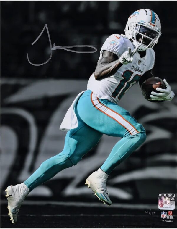 Tyreek Hill Miami Dolphins Autographed 11″ x 14″ Peace Sign Spotlight Photograph – Limited Edition of 110