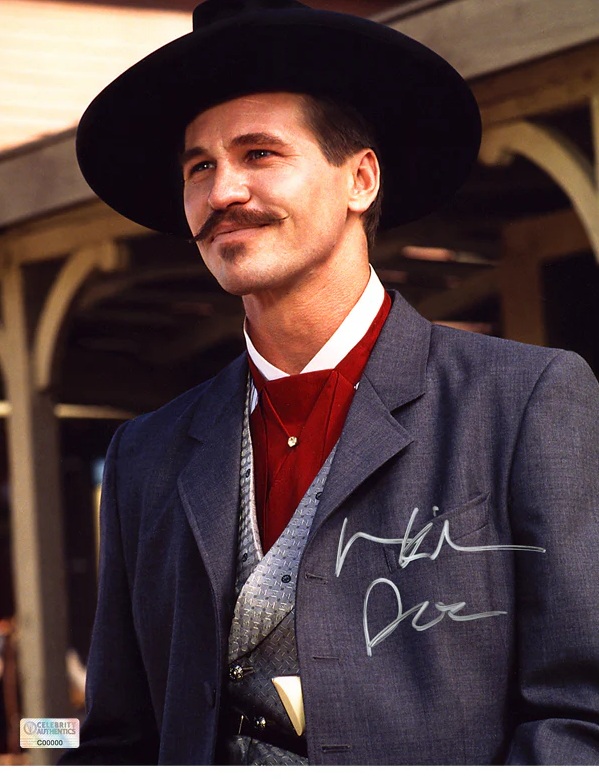 This 8x10 photo of Doc Holliday from the movie Tombstone has been personally hand-signed signed by Val Kilmer during his autograph signing with Celebrity Authentics. Item ships affixed with the Celebrity Authentics serial-numbered and tamper evident Authentication Hologram and includes Celebrity Authentics Certificate of Authenticity featuring picture of Val signing photo.