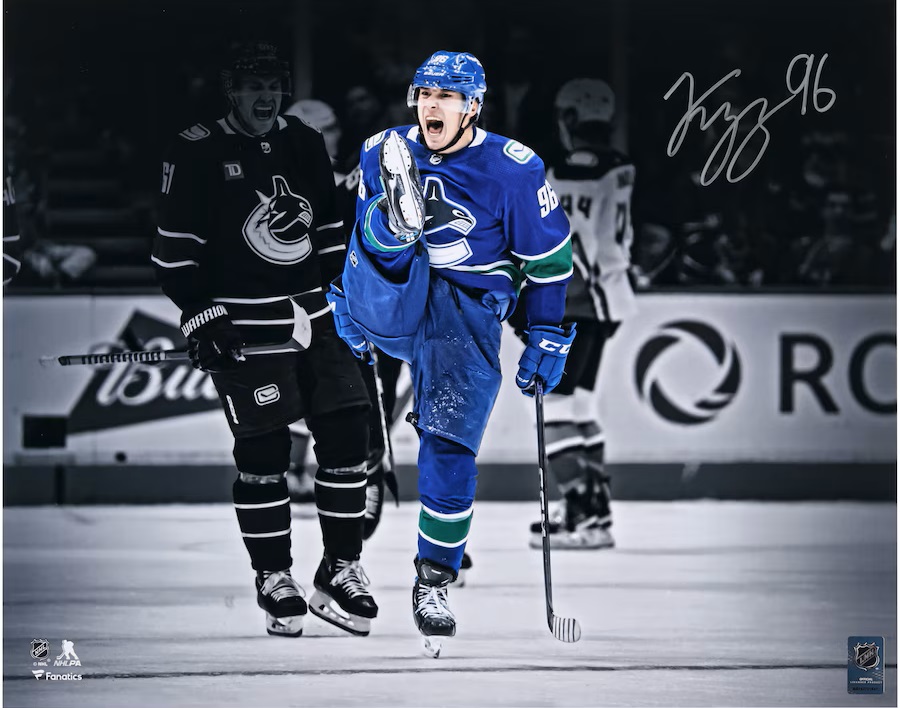 Vancouver Canucks Andrei Kuzmenko Autographed 16″ x 20″ Celebrating Spotlight Photograph