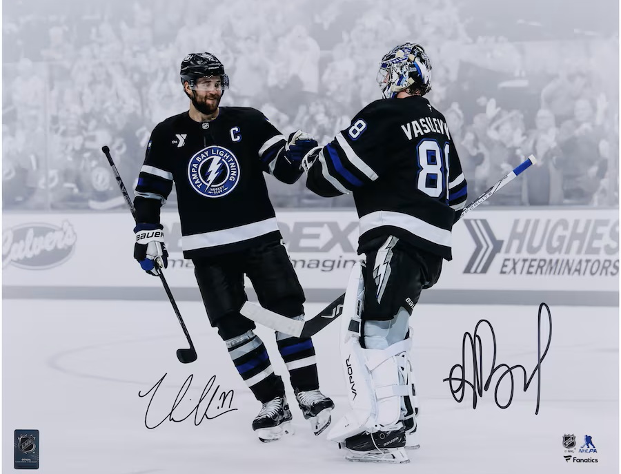 Victor Hedman & Andrei Vasilevskiy Tampa Bay Lightning Autographed 16″ x 20″ Celebration Photograph